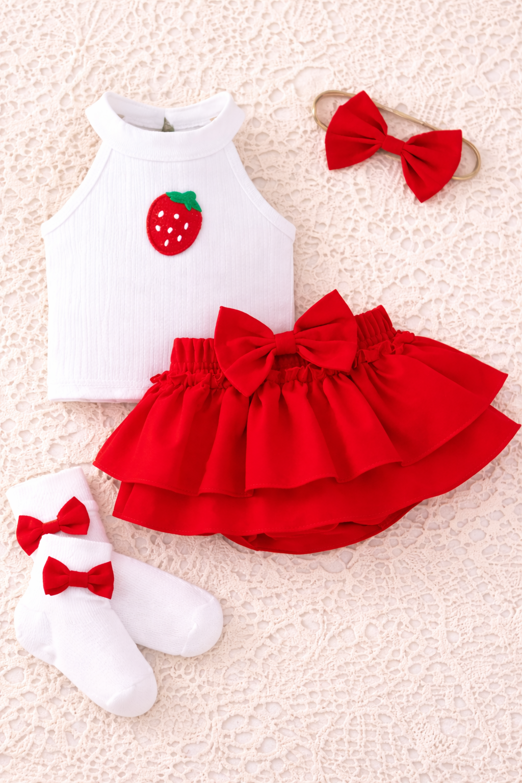 Sweet, stylish, and made to steal hearts — this adorable strawberry-inspired outfit is the perfect blend of charm and comfort for your little one! 🍓❤️