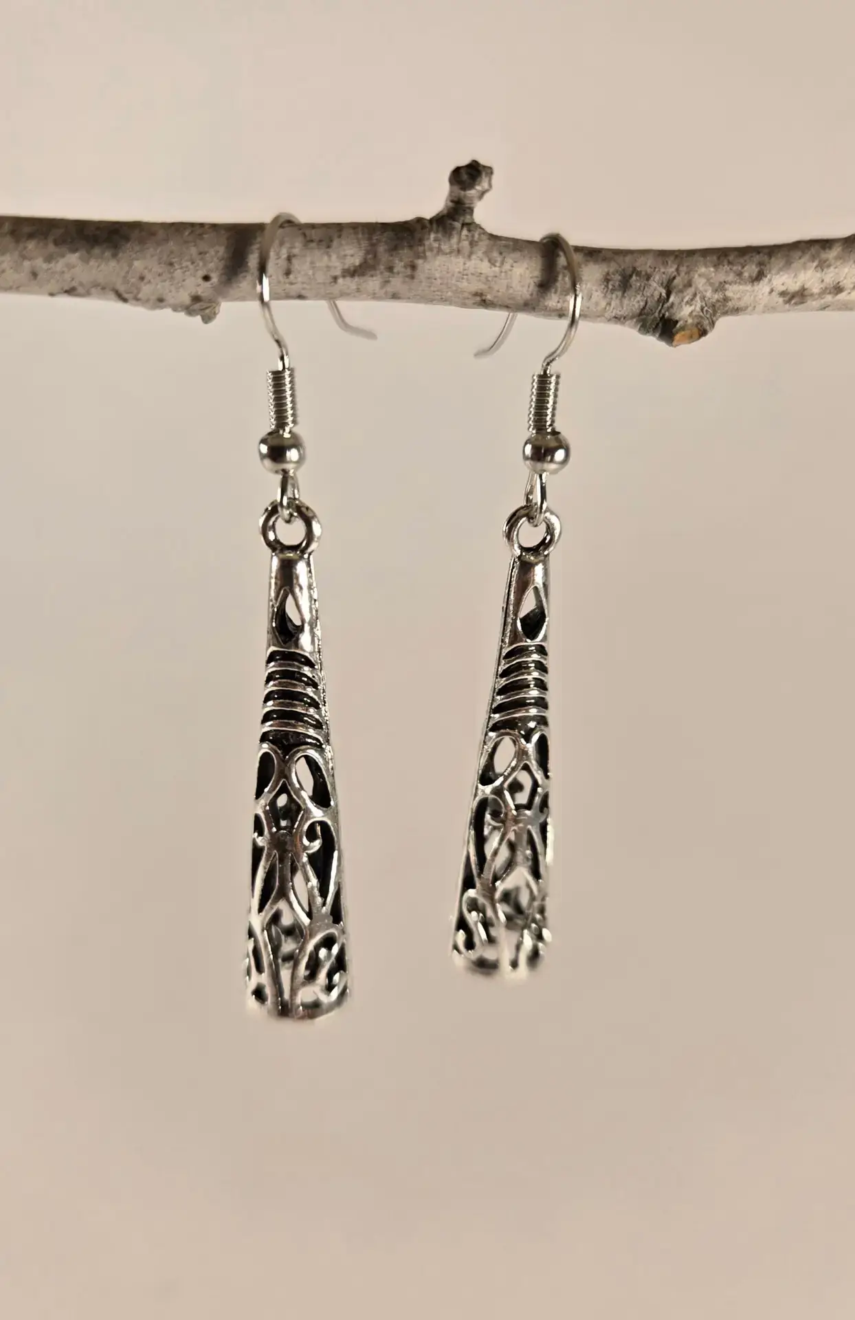 Channel vintage charm with a touch of free-spirited elegance. These antique silver drop earrings feature beautifully carved floral motifs, inspired by bohemian artistry and old-world craftsmanship.