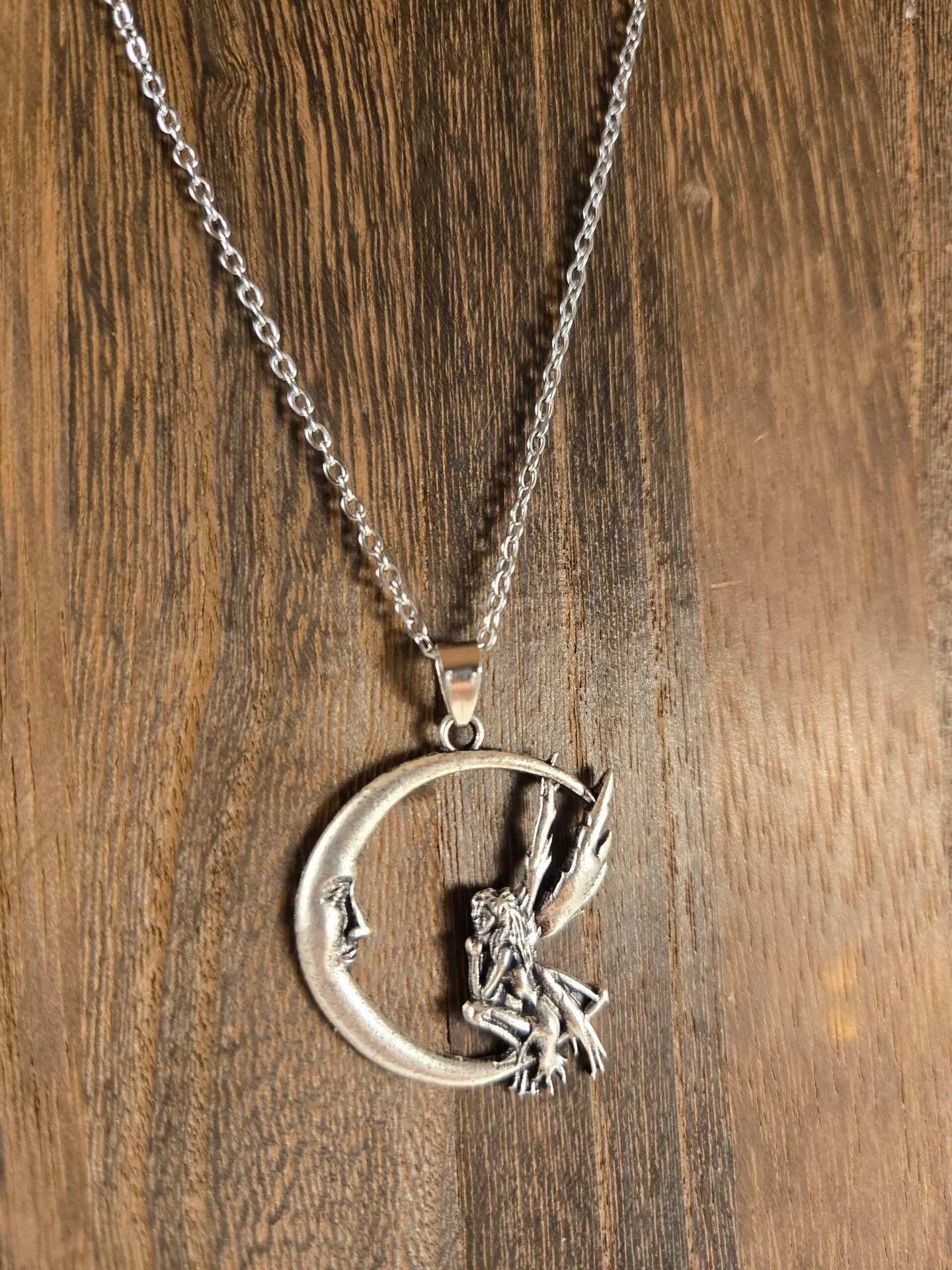 Step into a world of wonder with our antique silver fairy and the crescent moon necklace. This magical piece features a delicately detailed fairy gazing toward a crescent moon, symbolizing dreams, mystery, and the quiet power of the night. Crafted from durable titanium alloy with a timeless antique silver finish, it’s the perfect accessory for dreamers and magic-lovers alike.