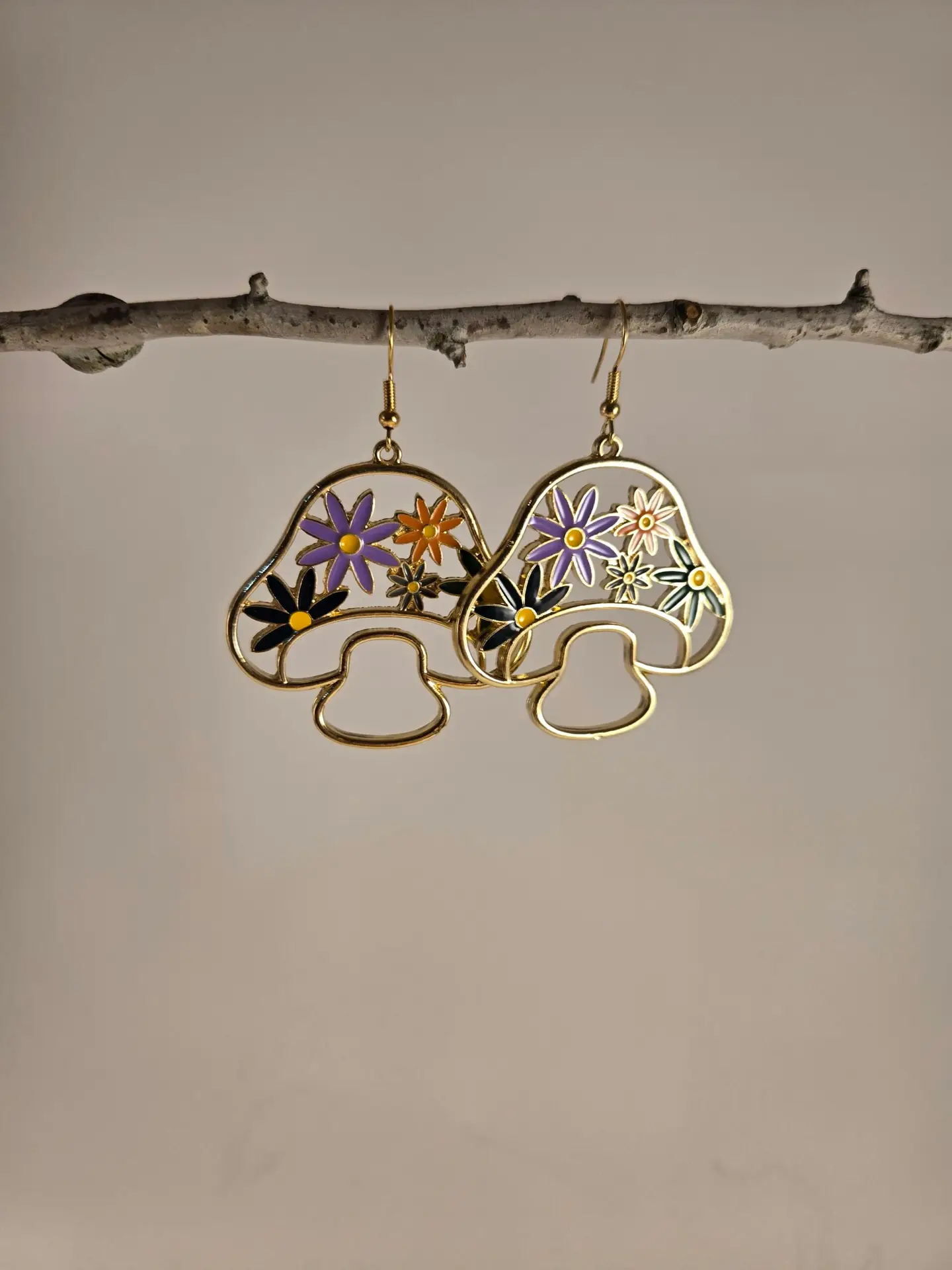mushrooms with flowers earrings