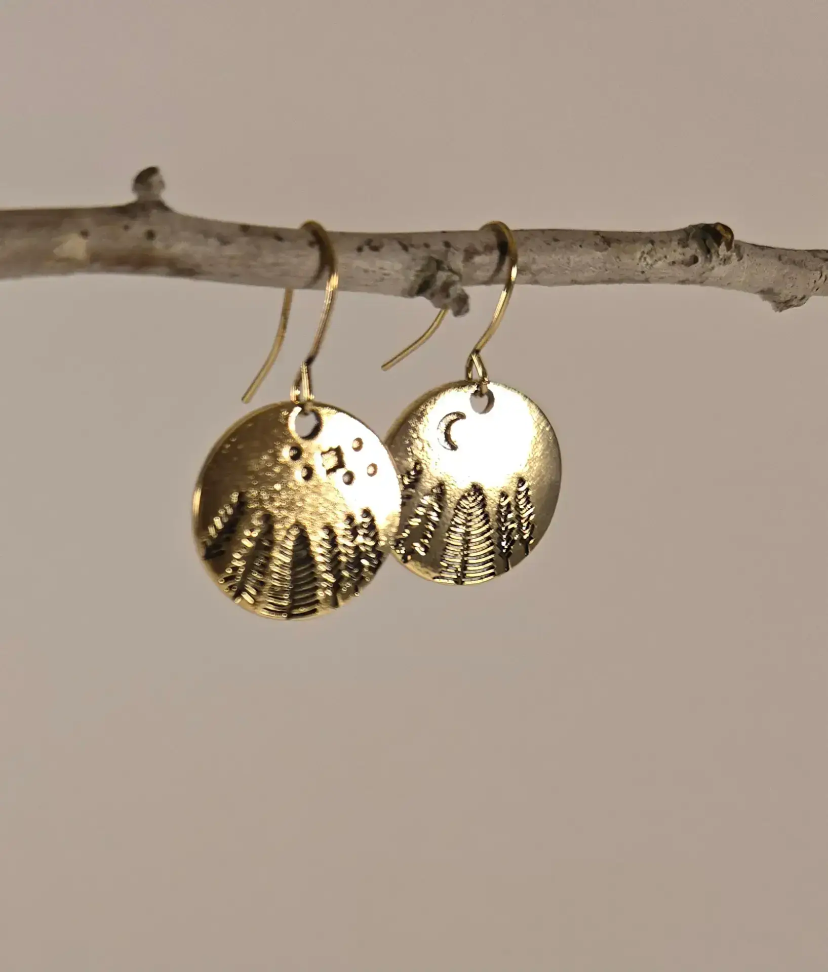 pine trees, moon and stars earrings