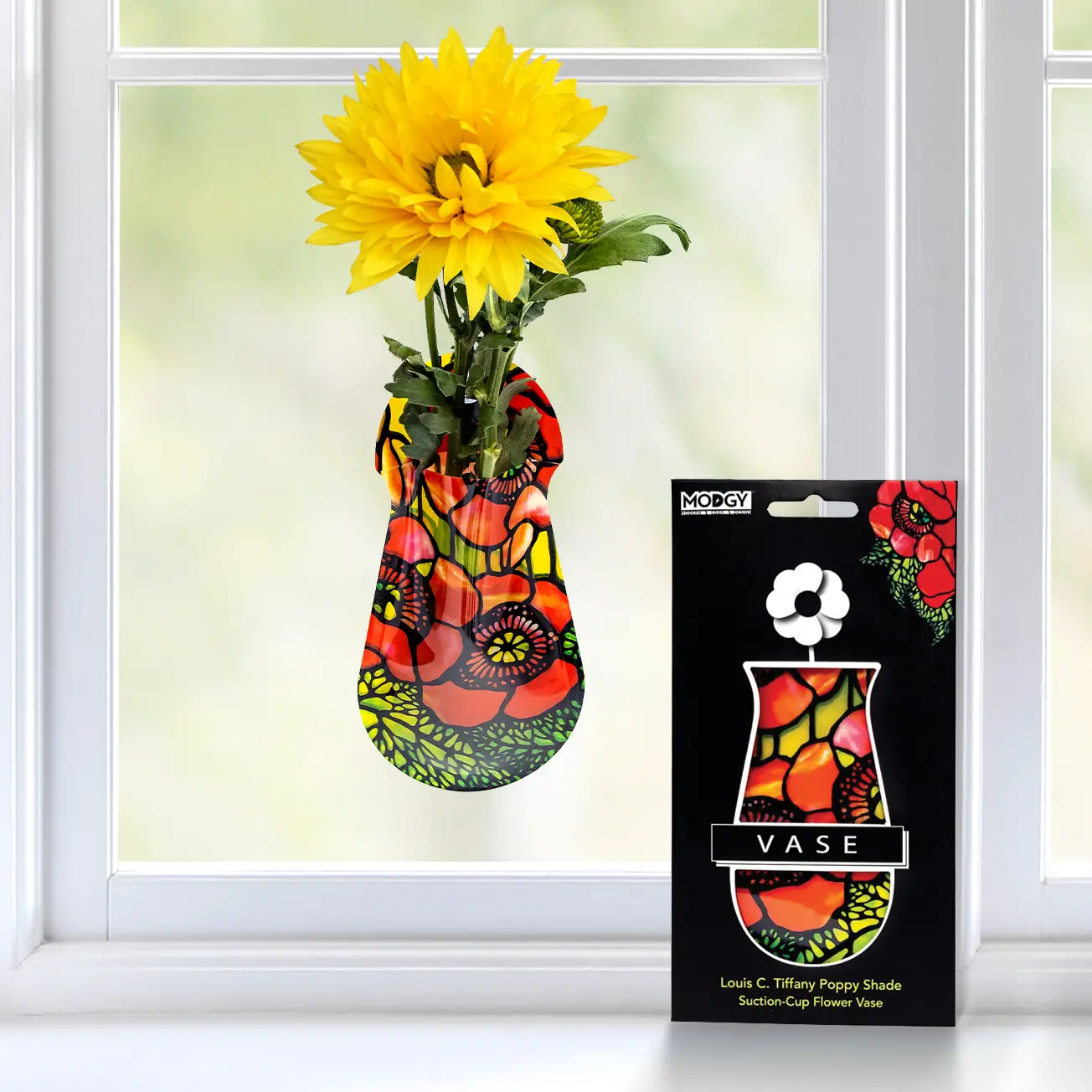 These Suction Cup Vases start out flat and expand with water. With the added advantage of a suction cup, the expandable and collapsible vases will adhere to any clean and flat surface in your home, office, hotel, car, RV or any other place you can imagine.